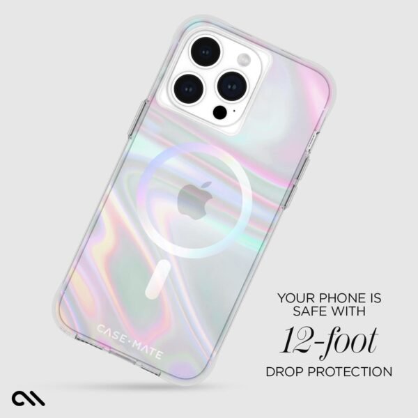 Stay unique— the Soap Bubble™ MagSafe Phone Case for the iP 15 Pro Max features an iridescent swirl design that changes hues with every move you make! We know how much you love your phone. so feel confident knowing it’s safe with 12-foot drop protection while strong built-in magnets allow for easy MagSafe accessorizing and charging.